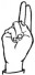 На ћирилици написано САРА КУРЕЉУШИЋ састоји се из 13 слова [?]. Исписано ћириличном једноручном азбуком за глувонеме: